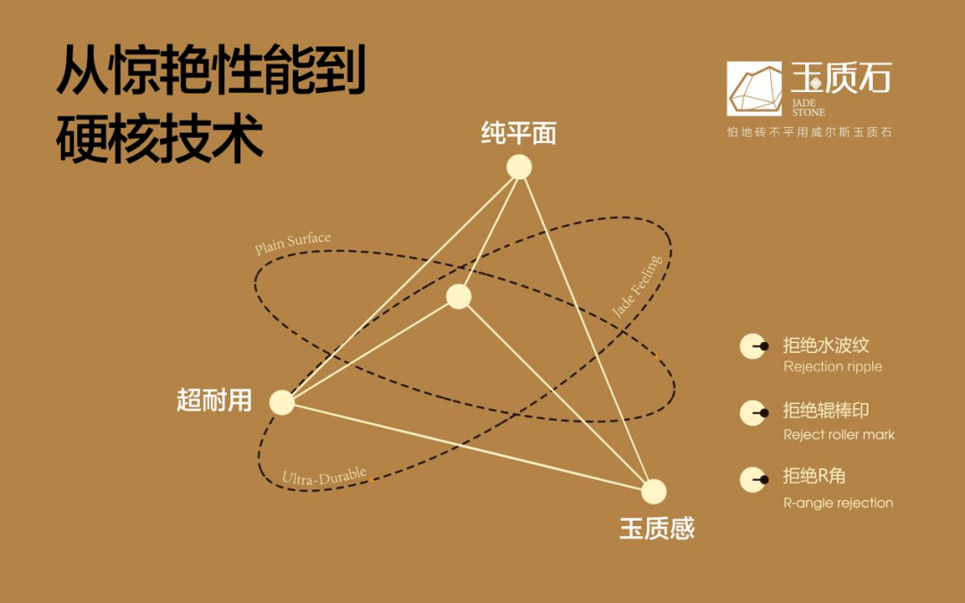 玉质石凭借“纯平面、超耐用、玉质感”三大核心优势,树立了威尔斯在高端瓷砖市场的技术标杆形象。这是一款被誉为“全能冠军”的IP产品,可最大程度满足五大消费主流群体的全价值诉求,能实现最大化基数客群的广泛覆盖和成交转化。